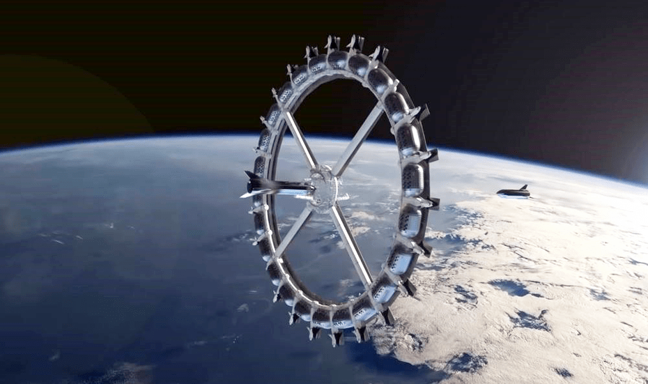 The space station hotel will be a 190-meter diameter wheel that will rotate to create some gravitational force. There will be 24 individual modules fitted out around the wheel to accommodate people and to support other functions on the space station.